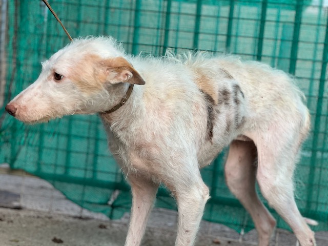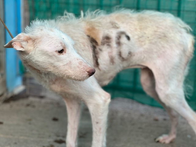 Ella a pesar de todo es un auténtico amor y confiada y pronto cogerá peso con nosotros, esperemos que con el tiempo se borre las marcas de las iniciales del ser deleznable que se lo ha hecho.