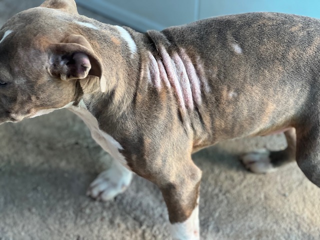 No sabemos que le habrán hecho en un costado de su cuerpecito, pero afortunadamente ya le está saliendo el pelo y pronto estara aún más espectacular de lo que ya es.