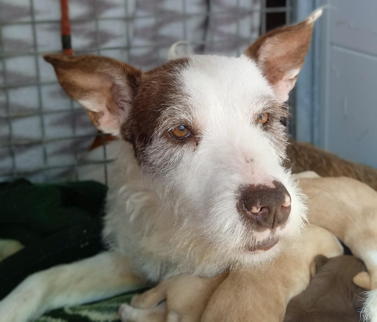 Os queremos presentar a COFFEE y sus cachorros. Abandonada embarazada y fue rescatada con sus cachorros recién nacidos en la jaula trampa. Aún son muy pequeños, pero pronto se podrán dar en adopción.