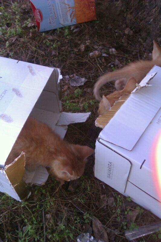 Esta mañana han abandonado dentro de tres cajas de cartón a una mamá gata con sus dos crías, una chica los ha encontrado en el parque de los patos de Puertollano.