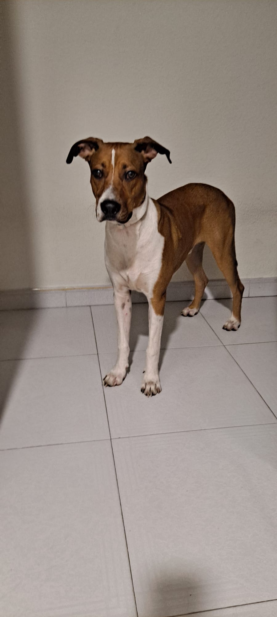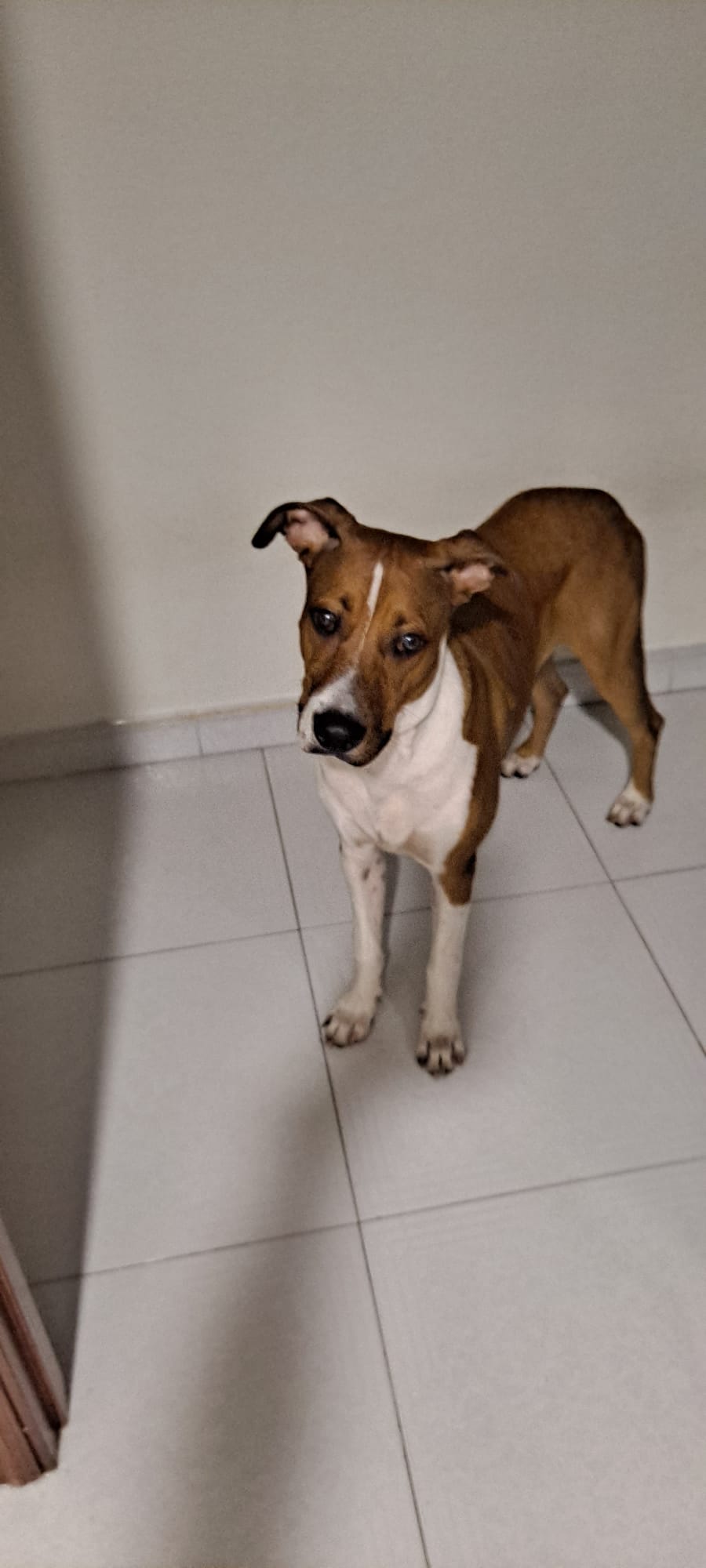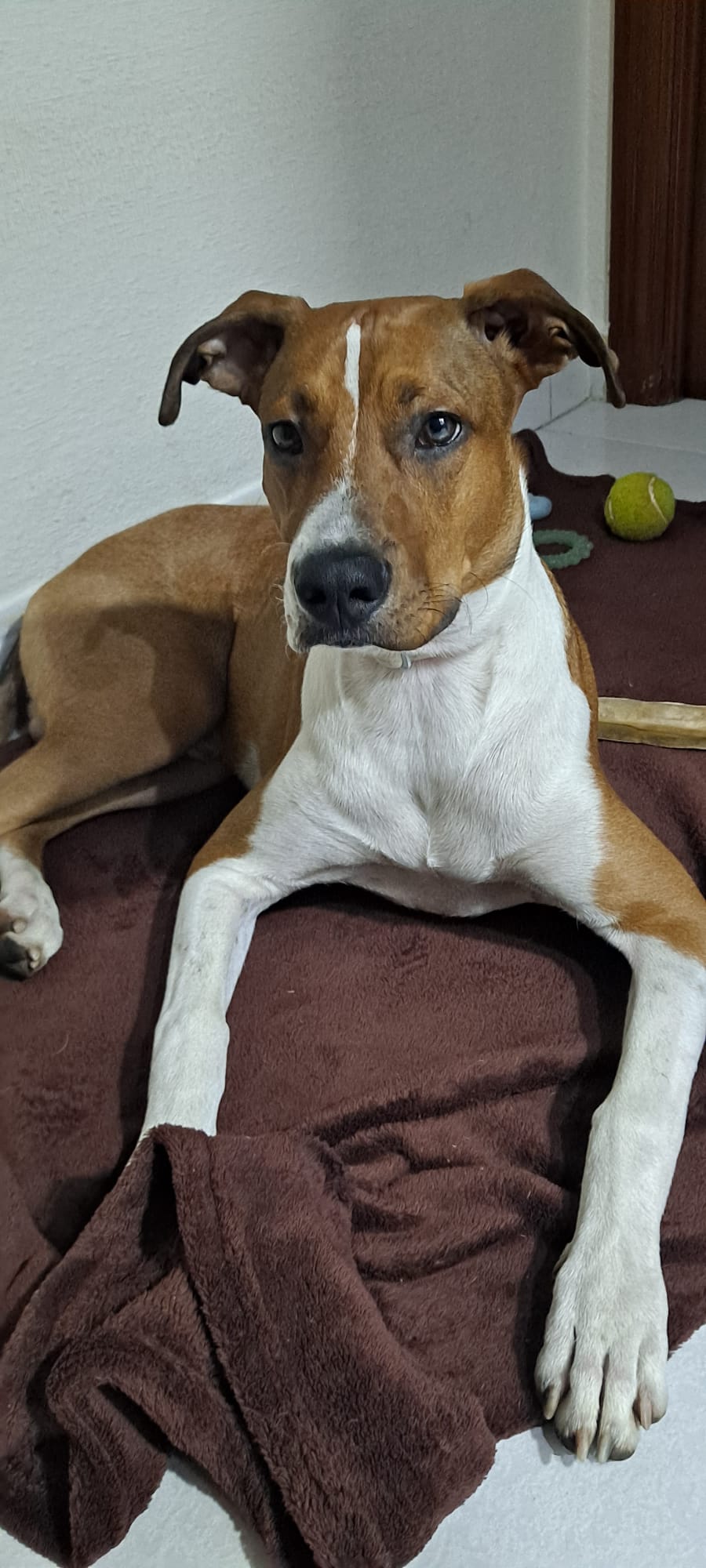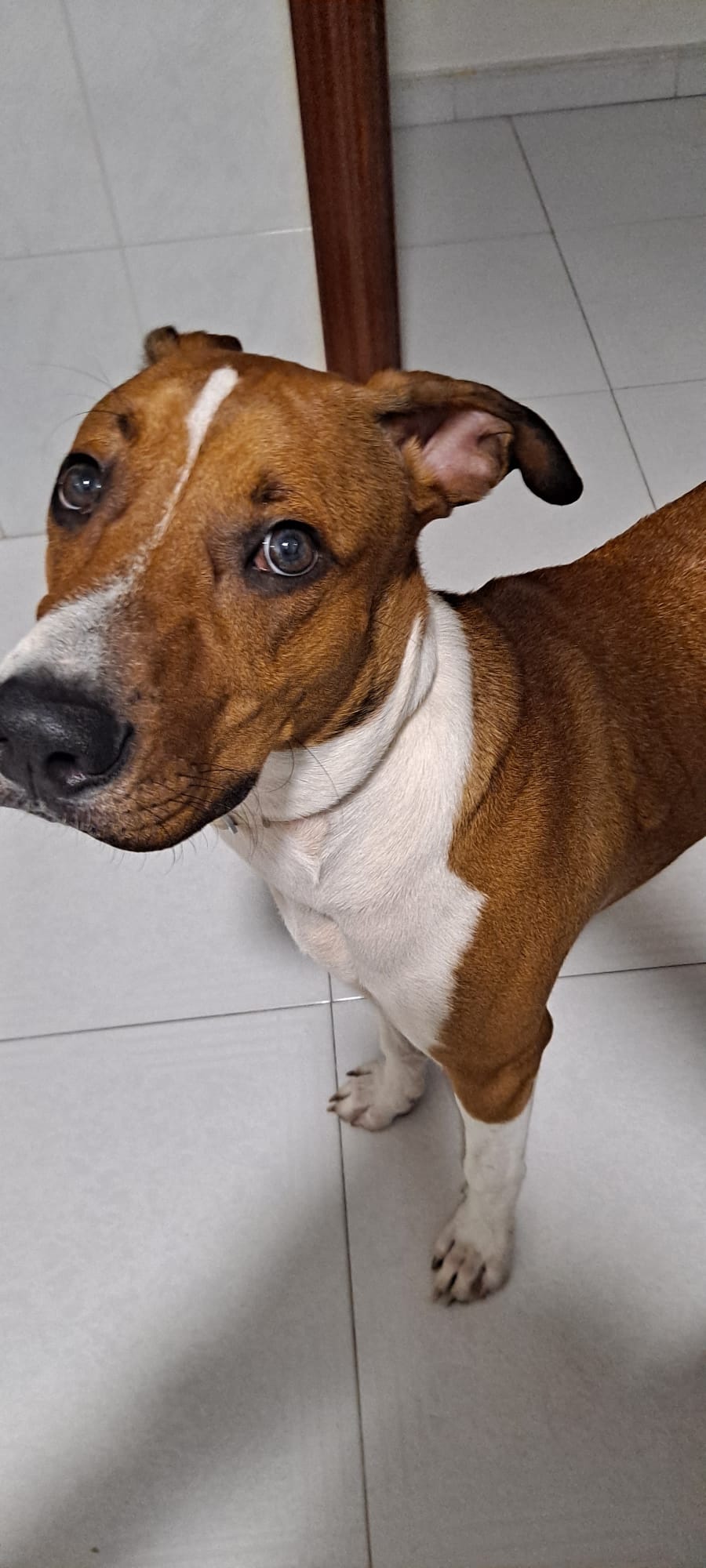 Buscamos hogar para Tyron, mestizo de 7 meses, chip,todas las vacunas, sociable con otros perros y personas