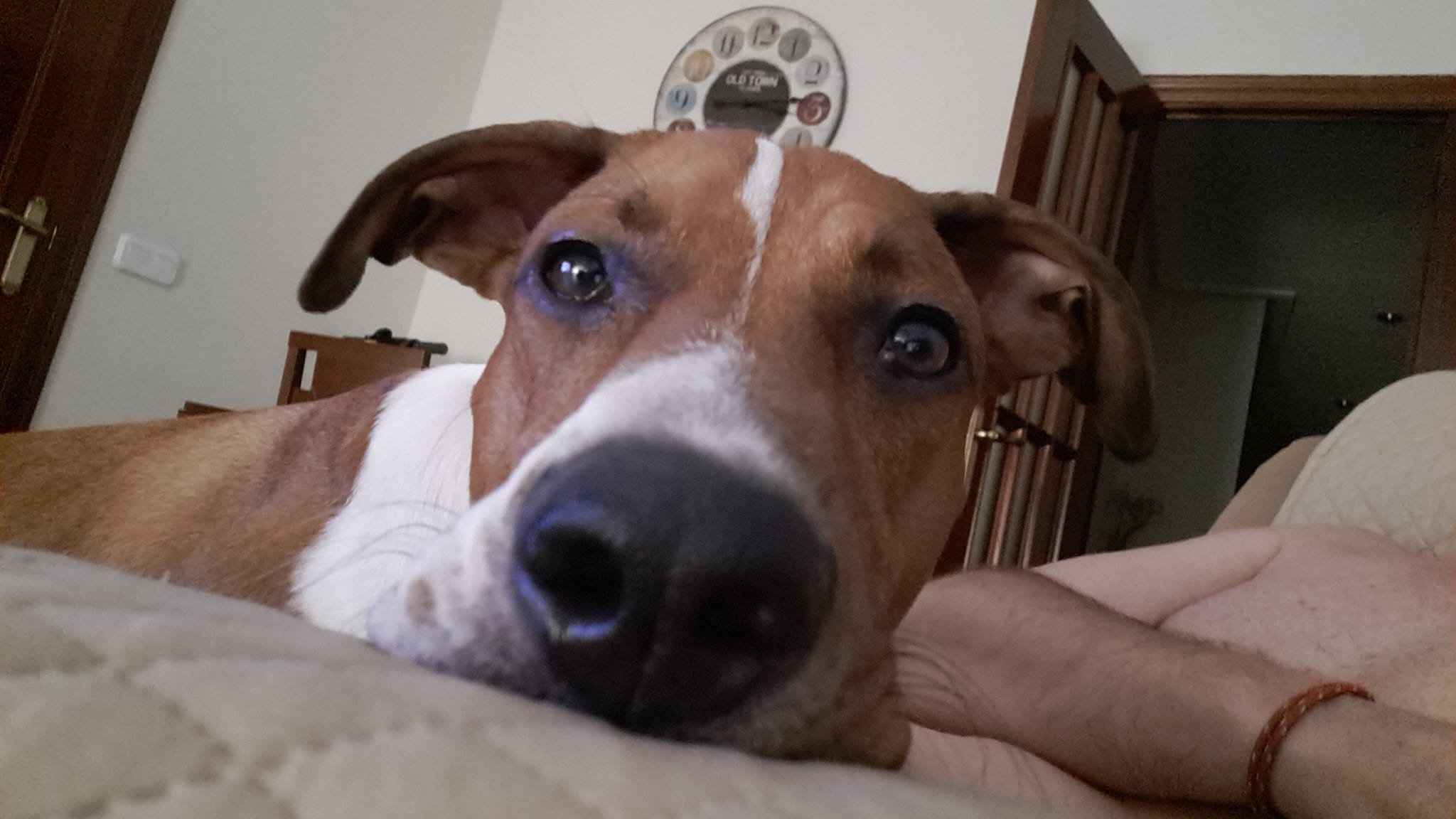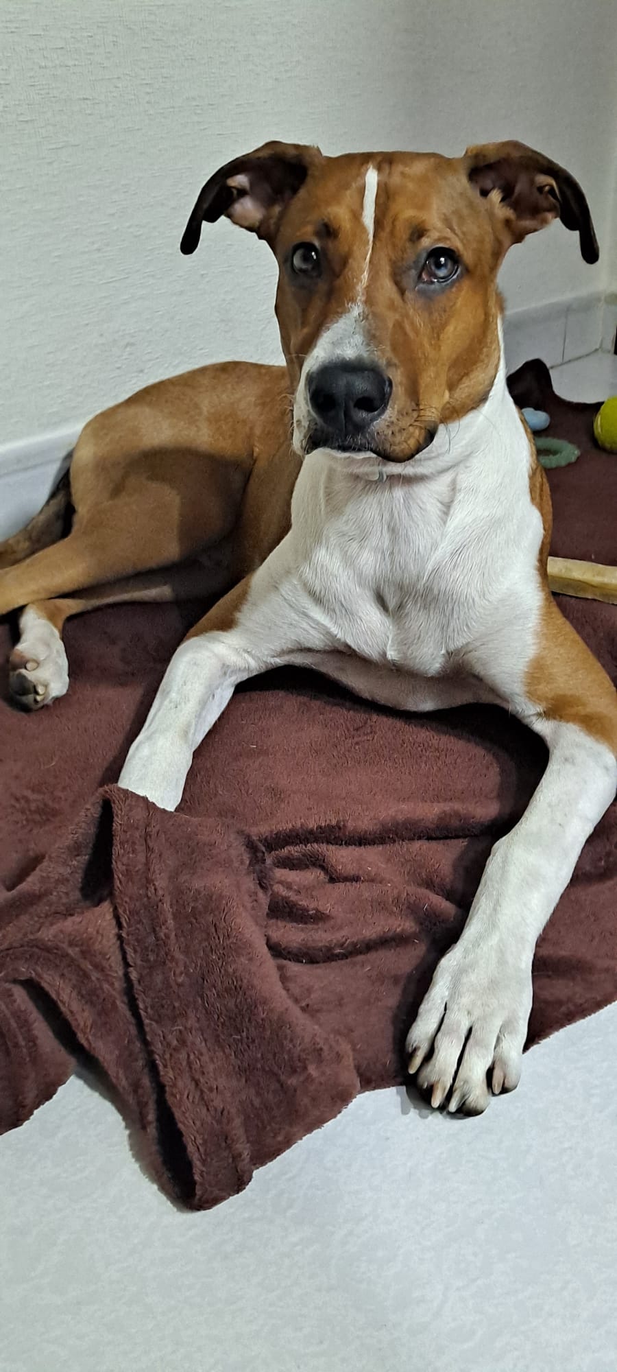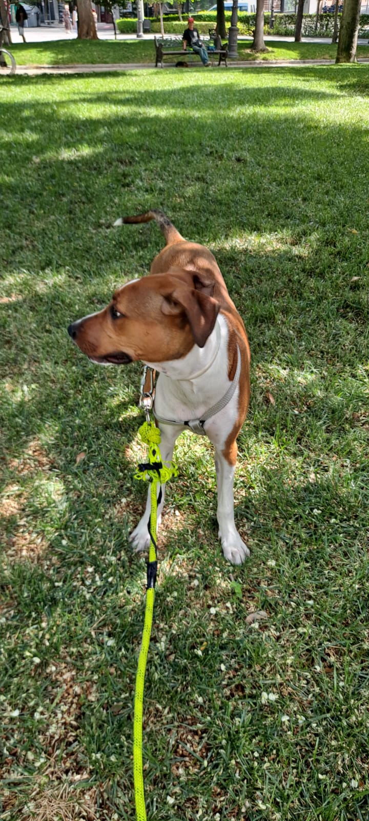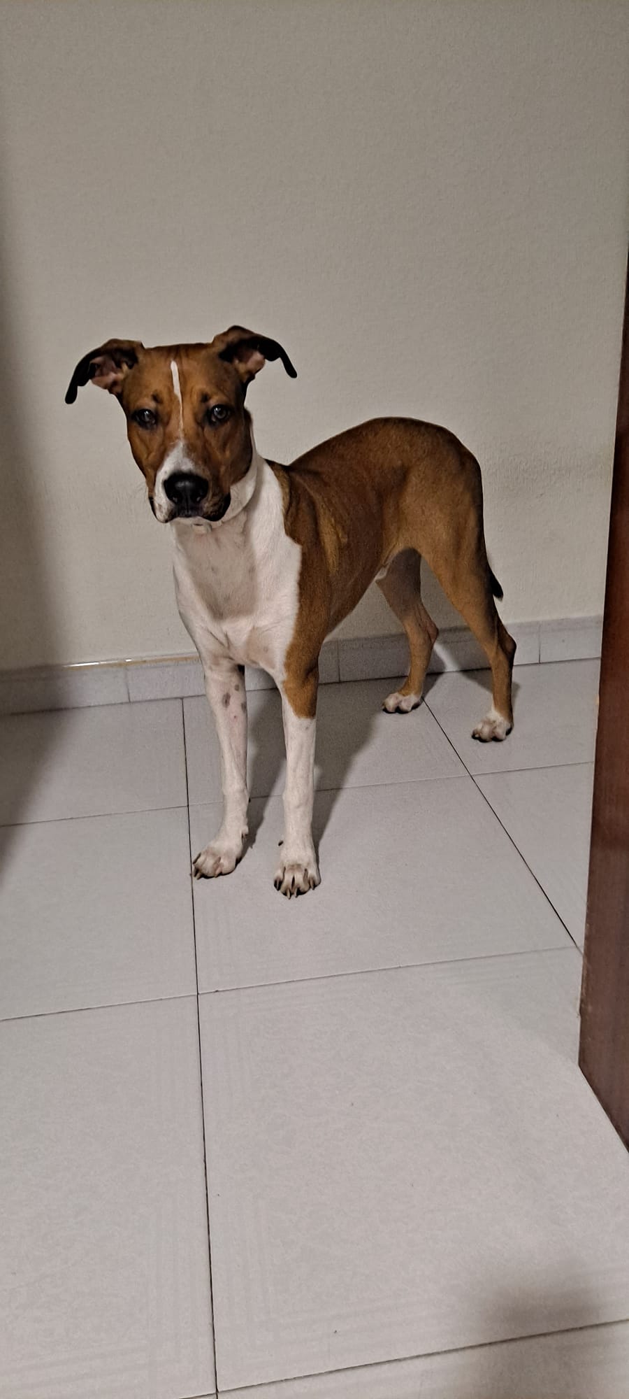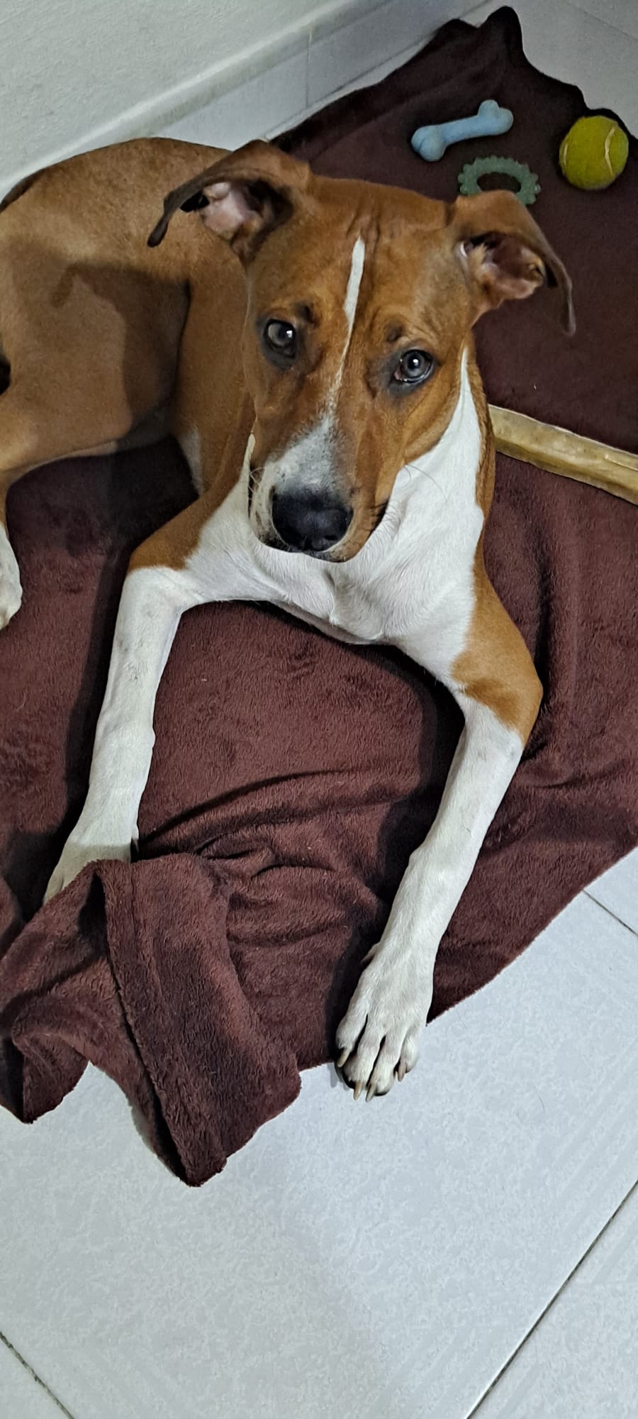 Buscamos hogar para Tyron, mestizo de 7 meses, chip,todas las vacunas, sociable con otros perros y personas