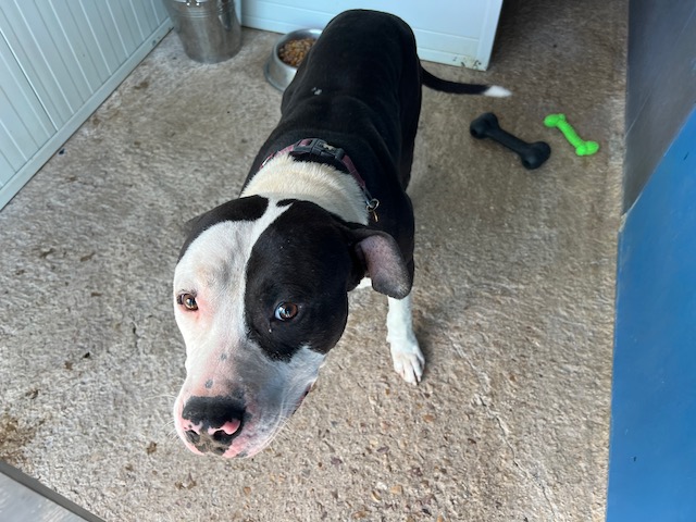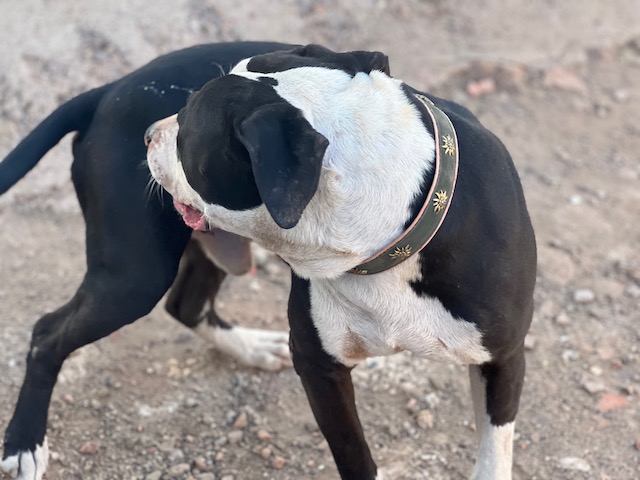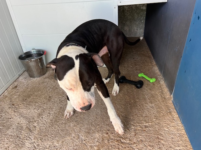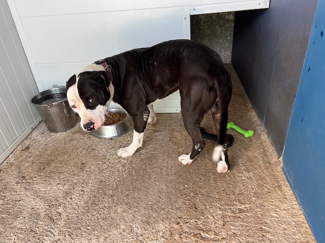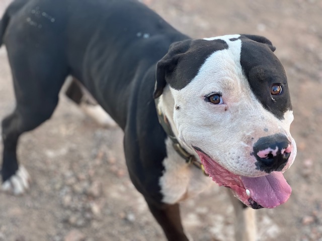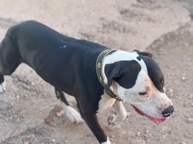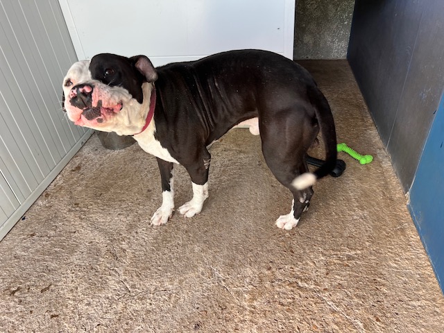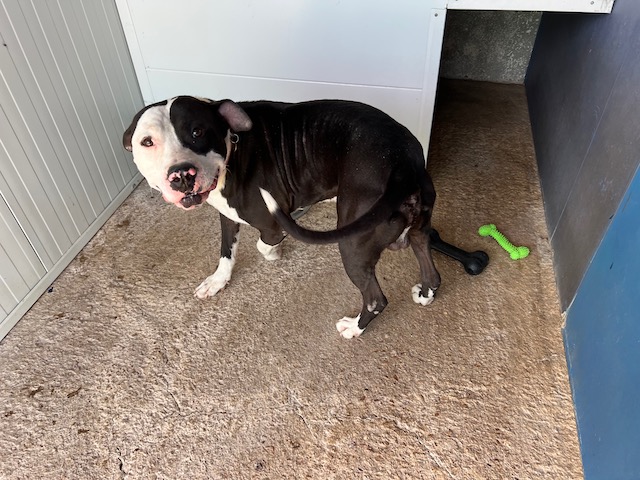 Danko es joven American Staffordshire que ha debido vivir un auténtico infierno, llego lleno de garrapatas y se agachaba esperando paliza si te acercabas a él, pero es tan inteligente y tan bueno que inmediatamente se ha dado cuenta que los voluntarios lo adoramos.