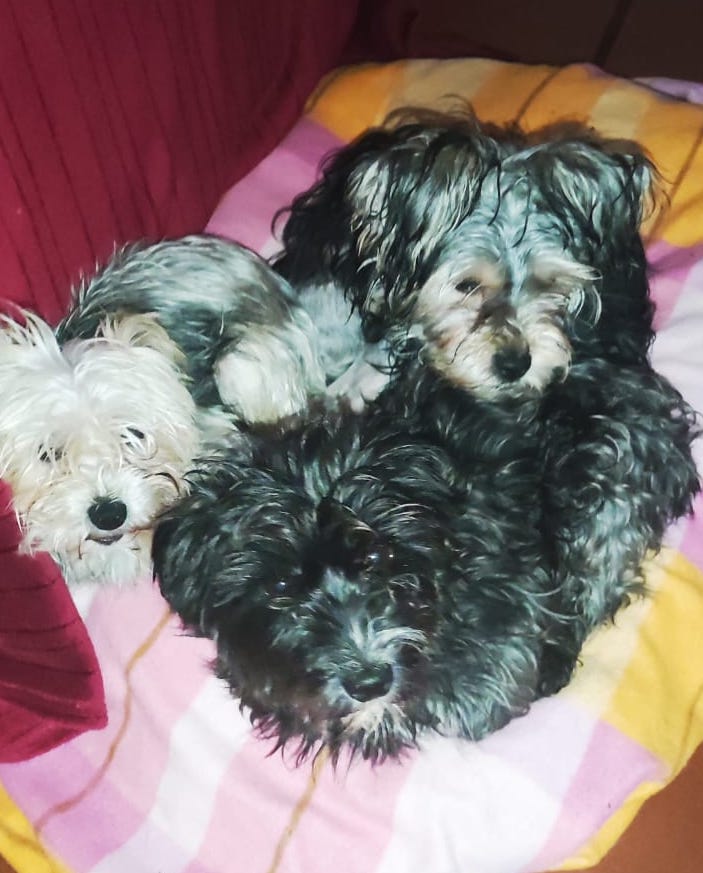 Coco, Saly y su hijo Sugus estan con nosotros, no nos han llegado en muy buenas condiciones y además Sugus venía con una cadera mal y que no se operó y tuvimos que hacerlo también nosotros con el coste que conlleva.