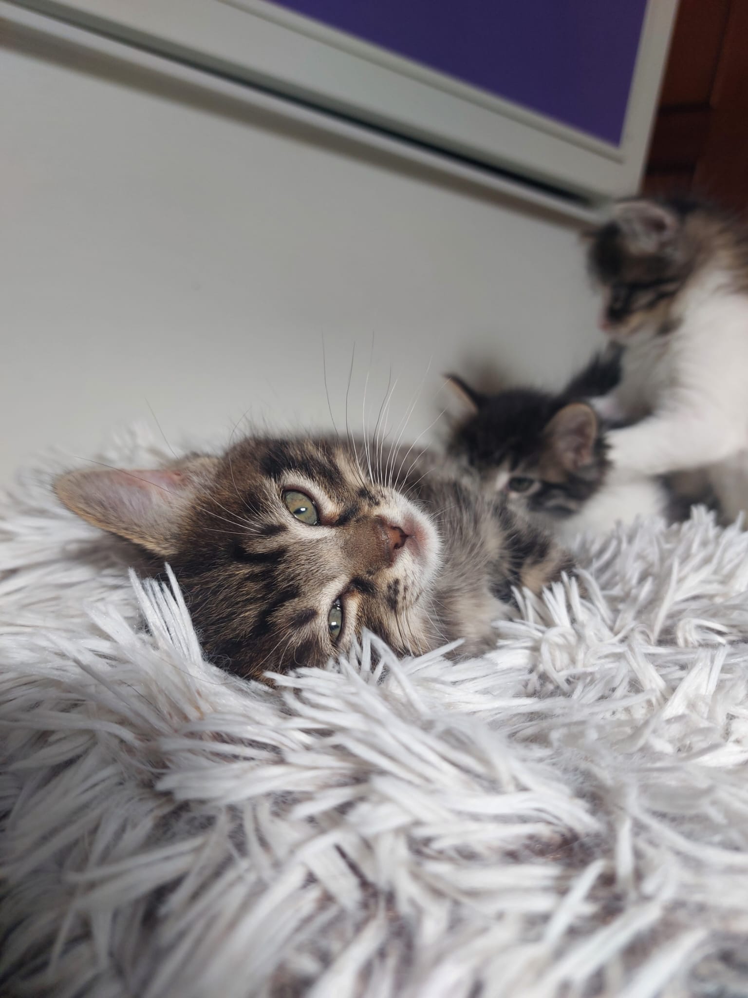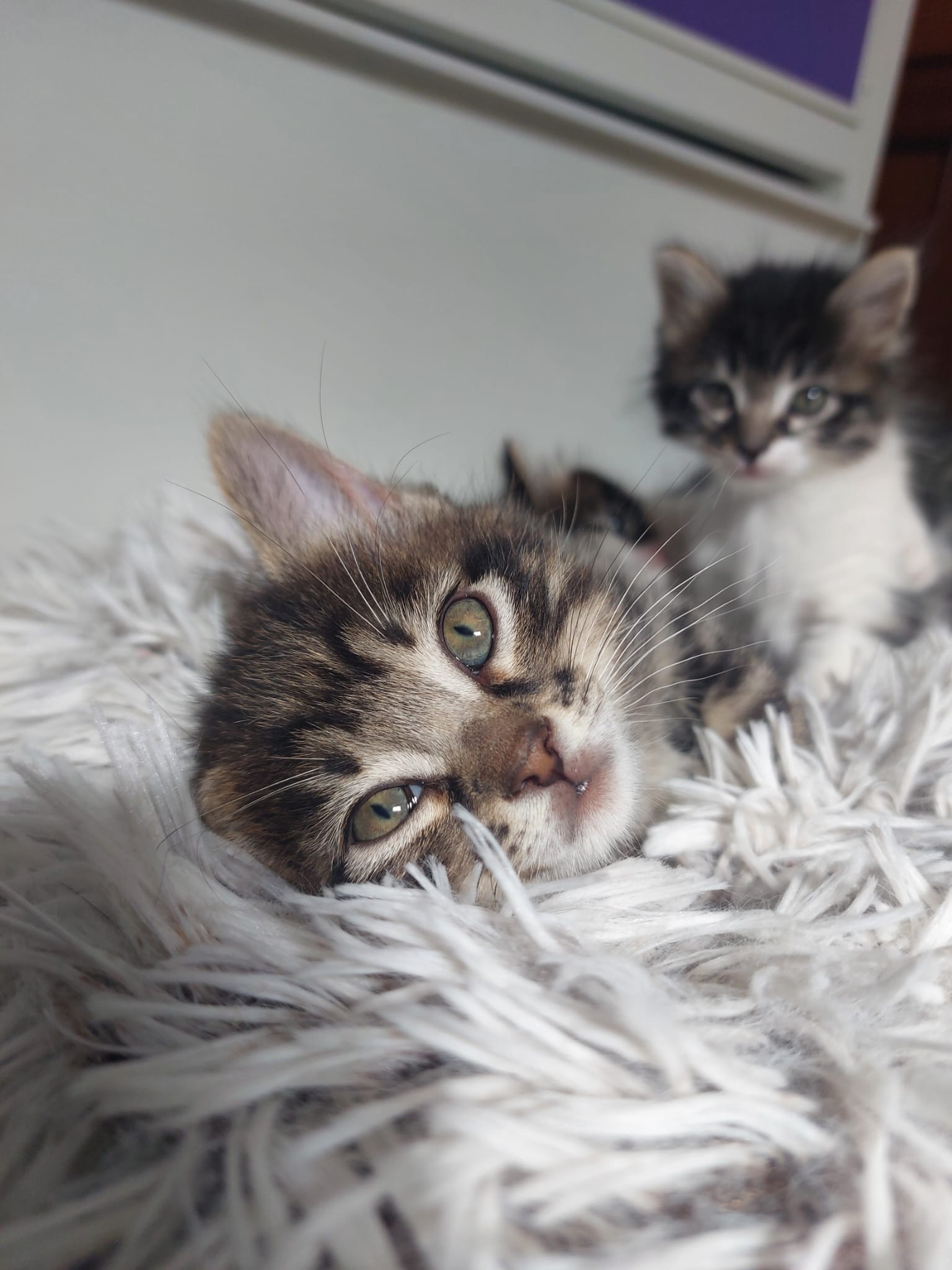 Tienen alrededor de 2 meses, fueron abandonados muy pequeños y han estado en acogida hasta poder ser adoptados.