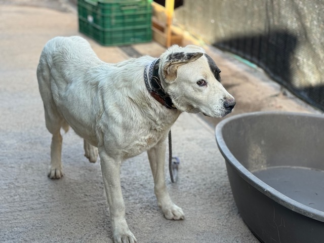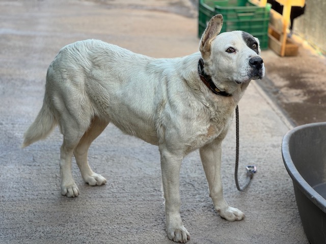 Es buenísima con personas y con perros ya sean machos o hembras.