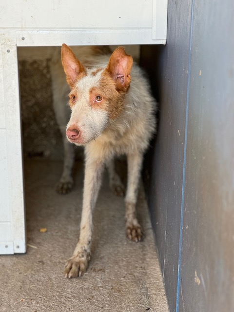 Yuka vagaba por la calle, está recien parida y ha llegado en bastante malas condiciones.