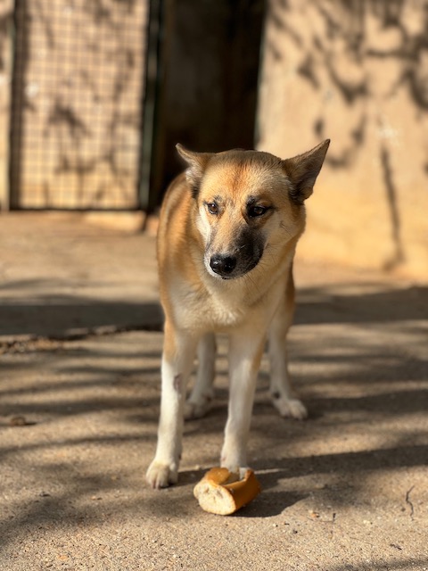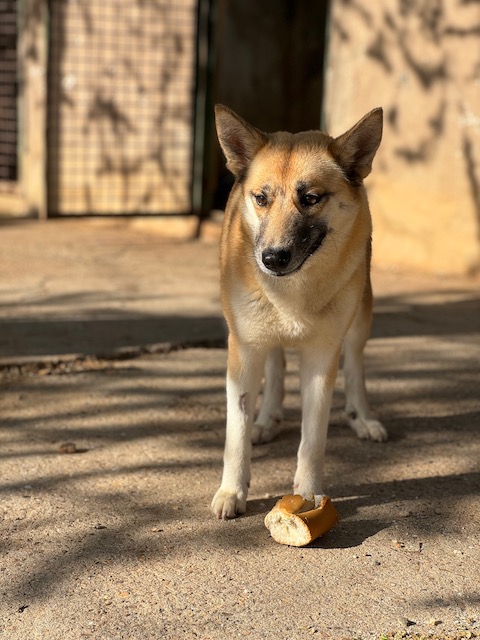 Ruper es más tímido y le cuesta al principio confiar en los humanos, es muy bueno también con otros perros.
