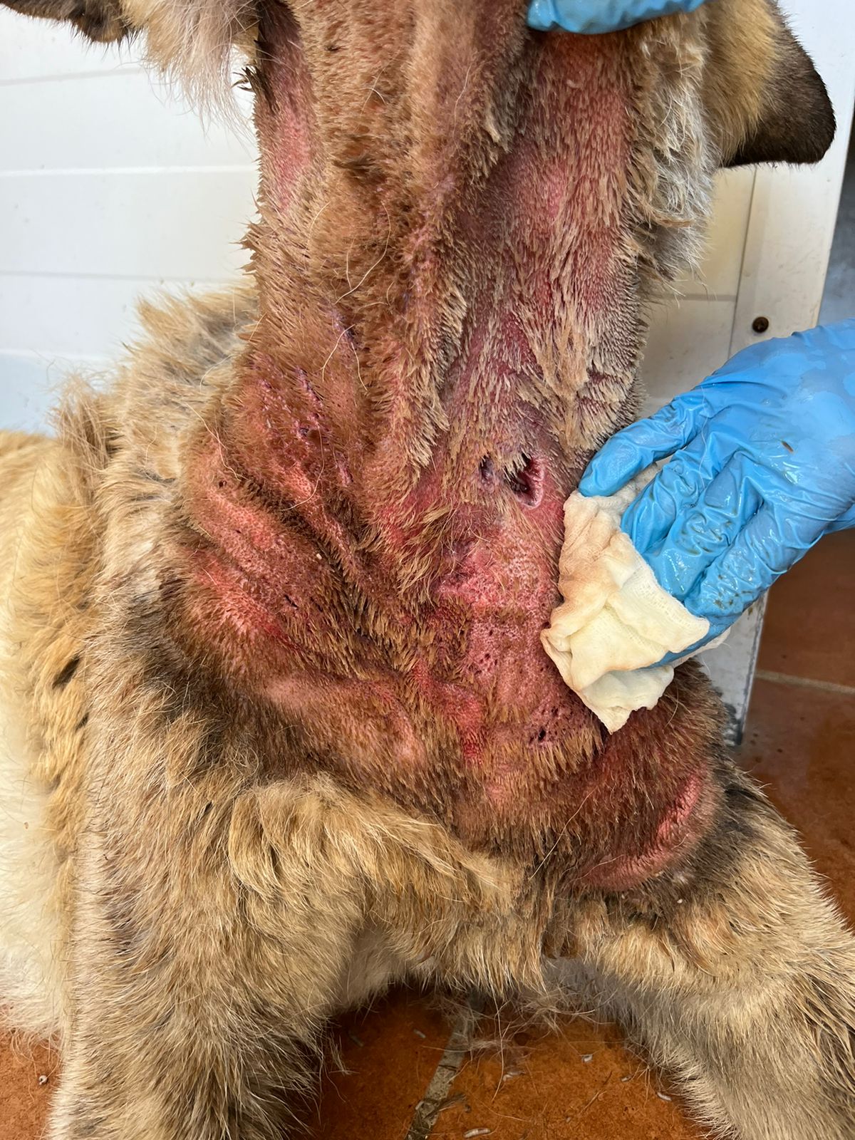 Fué atendido y curado por la veterinaria y ahora está perfecto.
