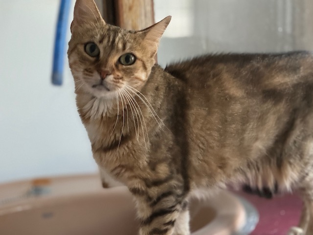 Con otros gatos le cuesta un poco al principio pero luego convive sin problemas con ellos.