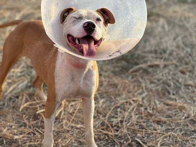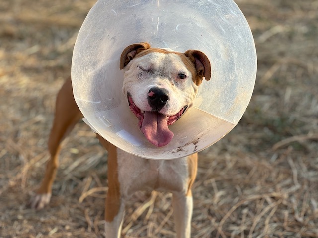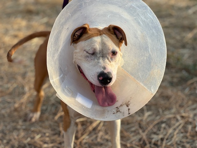 Llegó con un ojo reventado y tuvimos que llevarla con urgencia a a la Clínica veterinaria a enuclearle el ojo.