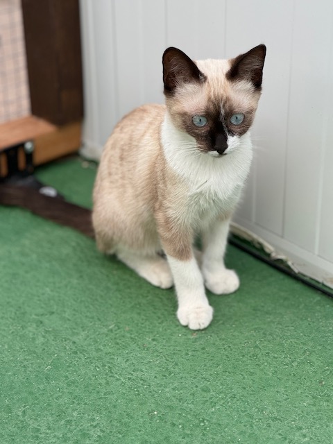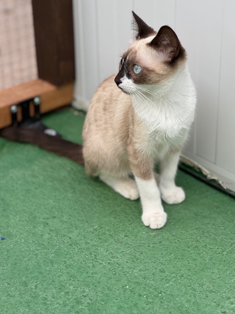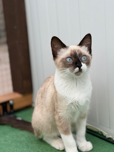 Es un poquito tímido y muy bien con otros gatos.