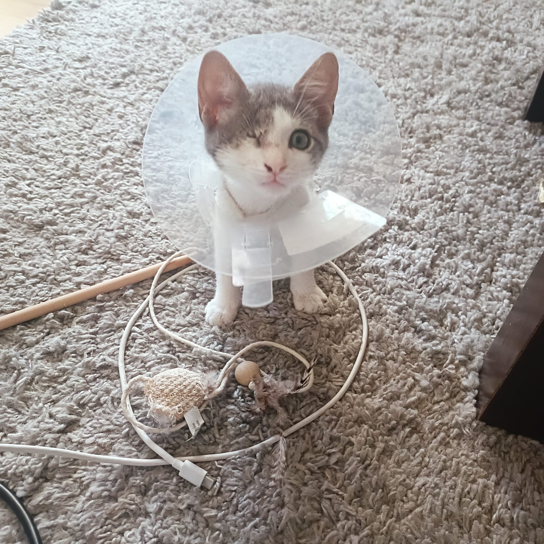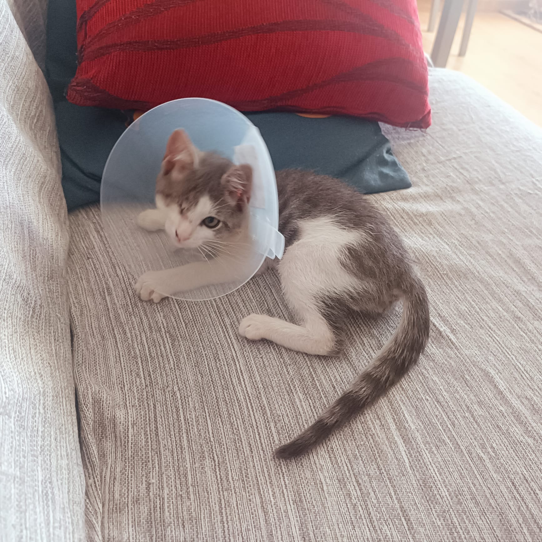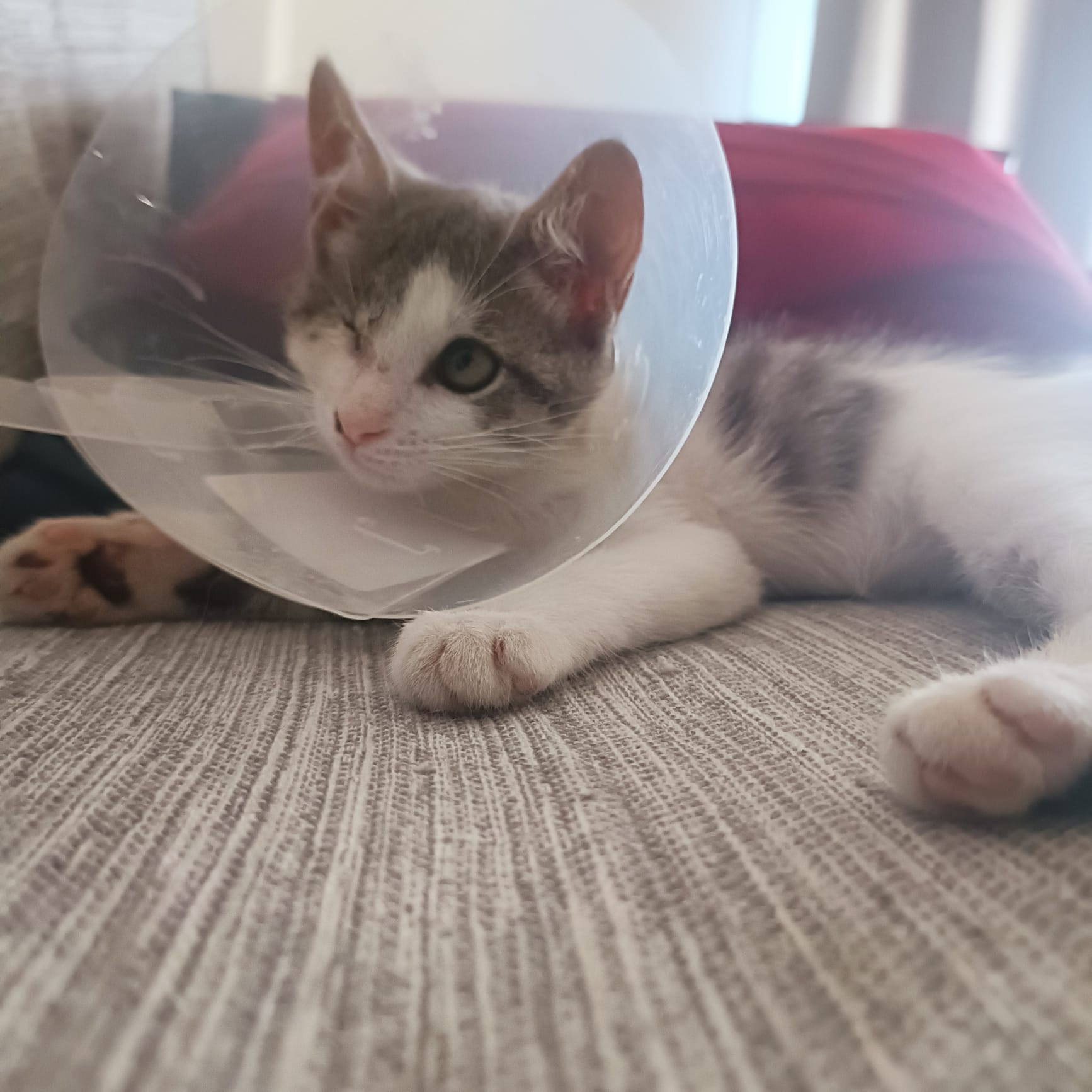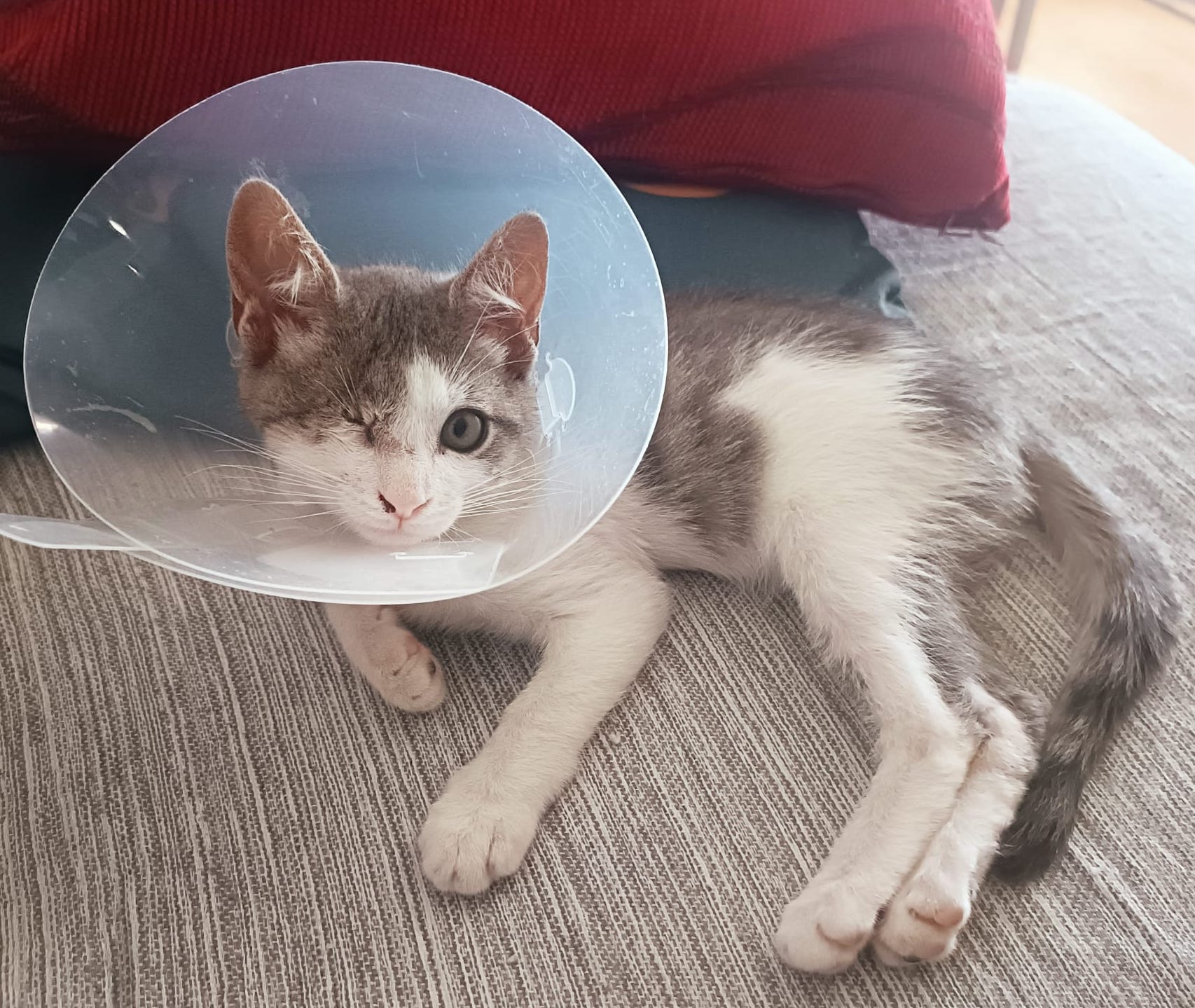 Lo llevamos a la Clínica veterinaria a enuclear ese ojo que le causaba seguro muchísimo dolor.