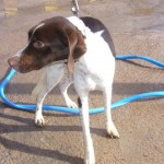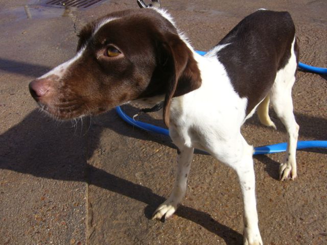 Iris fue traída a HUELLAS esta pasada Navidad, por una persona, nos dijo que se la tiraron por encima de la valla junto con sus dos hermanos, Quercus y Nandina (esta última ya ha sido adoptada). No se separan desde que han llegado al Albergue.