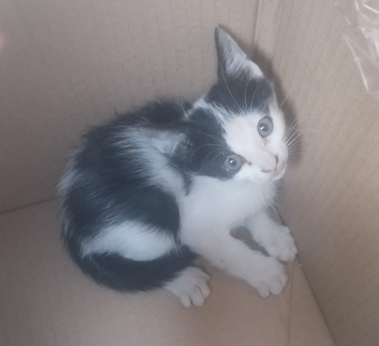 Door fue abandonado en una caja de cartón.