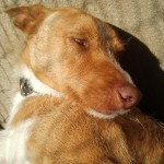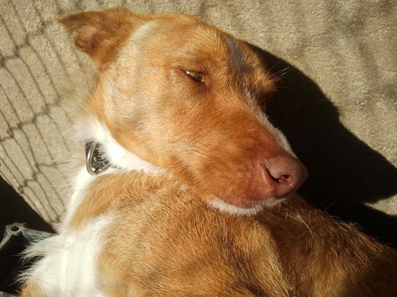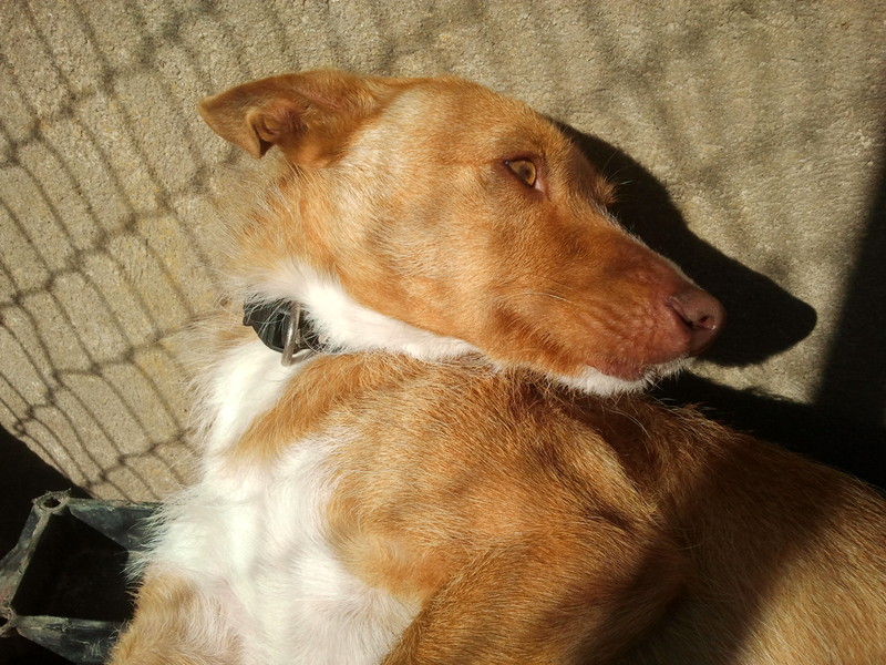 Picho es un podenco sociable con otros perros, muy cariñoso con las personas y bastante tranquilo.