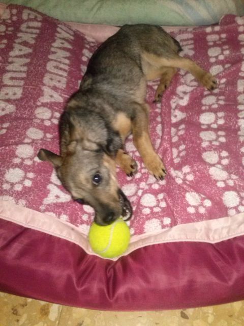 Ahora se recupera muy bien y tiene encantada a todos los que la conocen. Es muy alegre, dulce y mimosa. Le encanta jugar con la pelota, y si es en compañía mejor. Disfruta mucho estando con otros perros, ya sean grandes o pequeños.