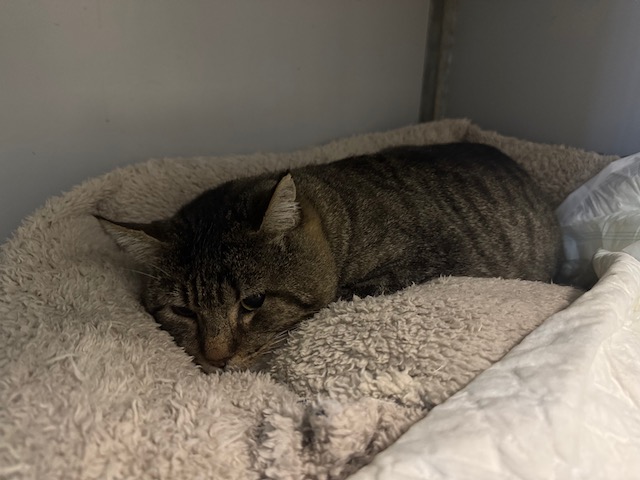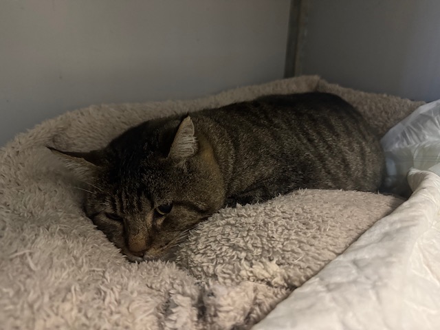 Pozito es un gato que a sus 9 años ha sido abandonado, quizás porque fue atropellado.