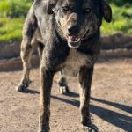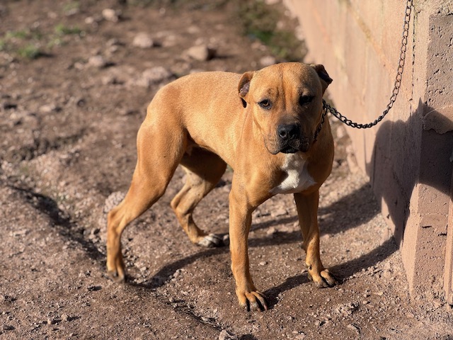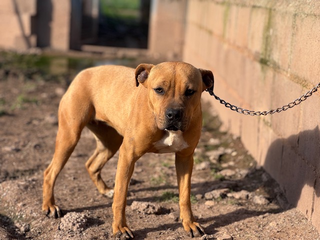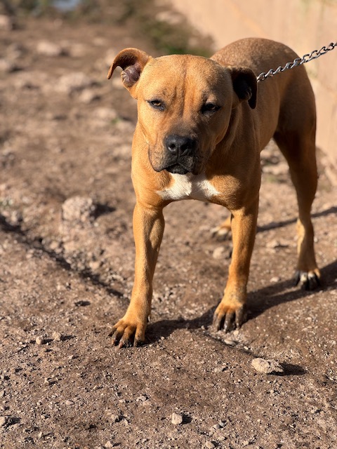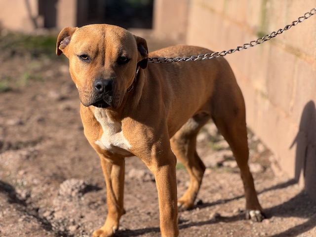Buenísima con personas y con perros ya sean machos o hembras, de hecho es sumisa y a veces le pegan.