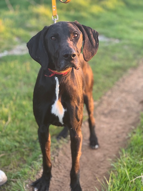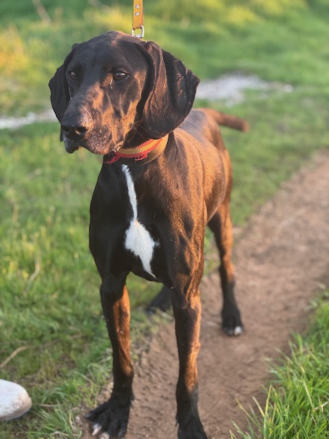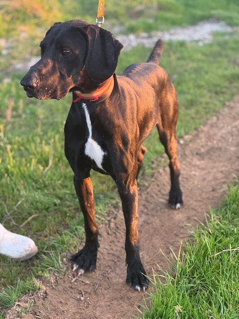 Le encanta jugar y saltar vallas, por eso no sabemos si se ha escapado de donde estaba dando un salto o lo han abandonado.