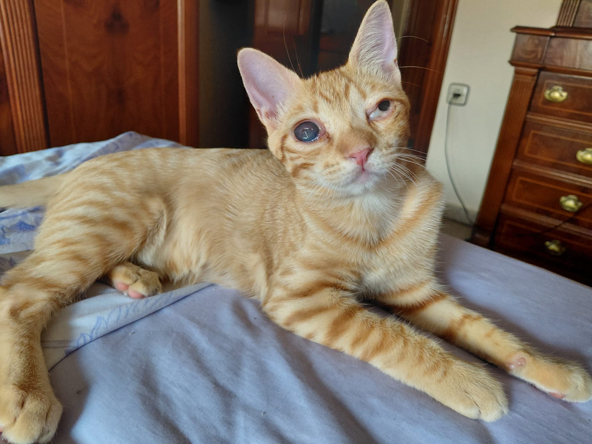 Wanda es totalmente ciega y hubo que enuclearle un ojo.