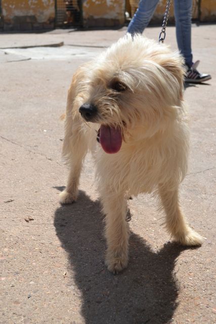 Lola es simpatica y muy buena,sociable con todos los perros aunque no se fia mucho de los perros grandes. Es buena con personas y otros perros.