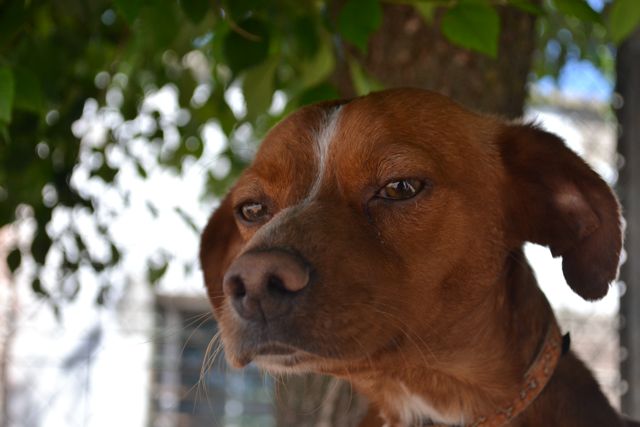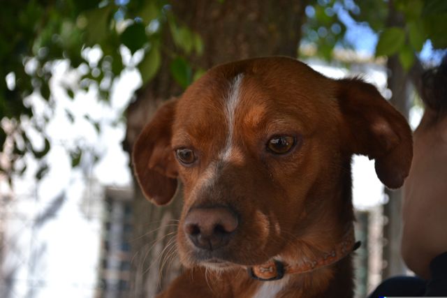 Enebro es un precioso perro de talla mediana a pequeña. Es un cielete, super bueno con personas y niños y con otros perros. A veces se deja intimidar por otros perros pero es cuestión de tiempo y dedicación que se le pase.