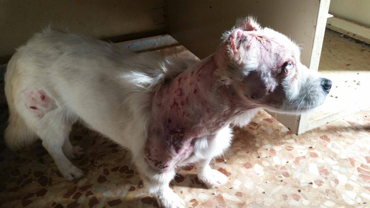 MUY URGENTE AYUDA PARA FUYUR!!!!!! Pedimos una urgente acogida o adopción para nuestro pequeño Fuyur, ha sido atacado por varios perros del albergue, tuvo que ser sedado para poder rapar el pelo, tiene muchas heridas, por el cuello y todo…